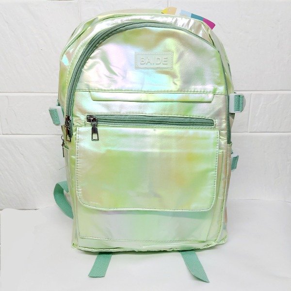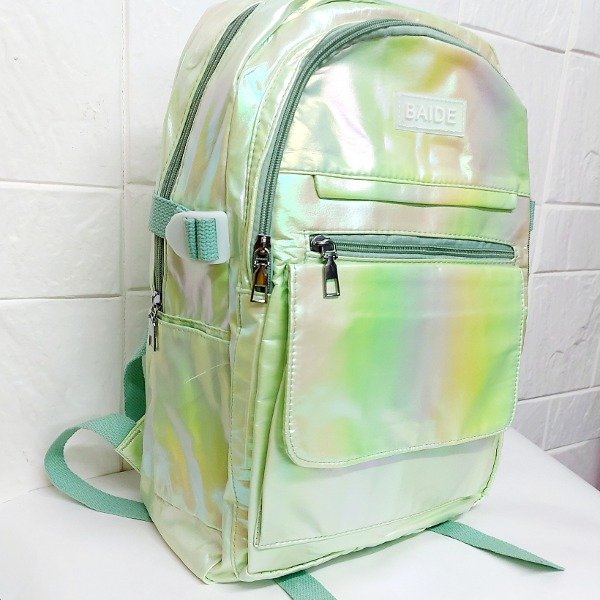 Mochila tornasolada baide verde 3 cierres