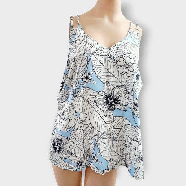 Blusa Dama en fibrana Blanco y celeste T4