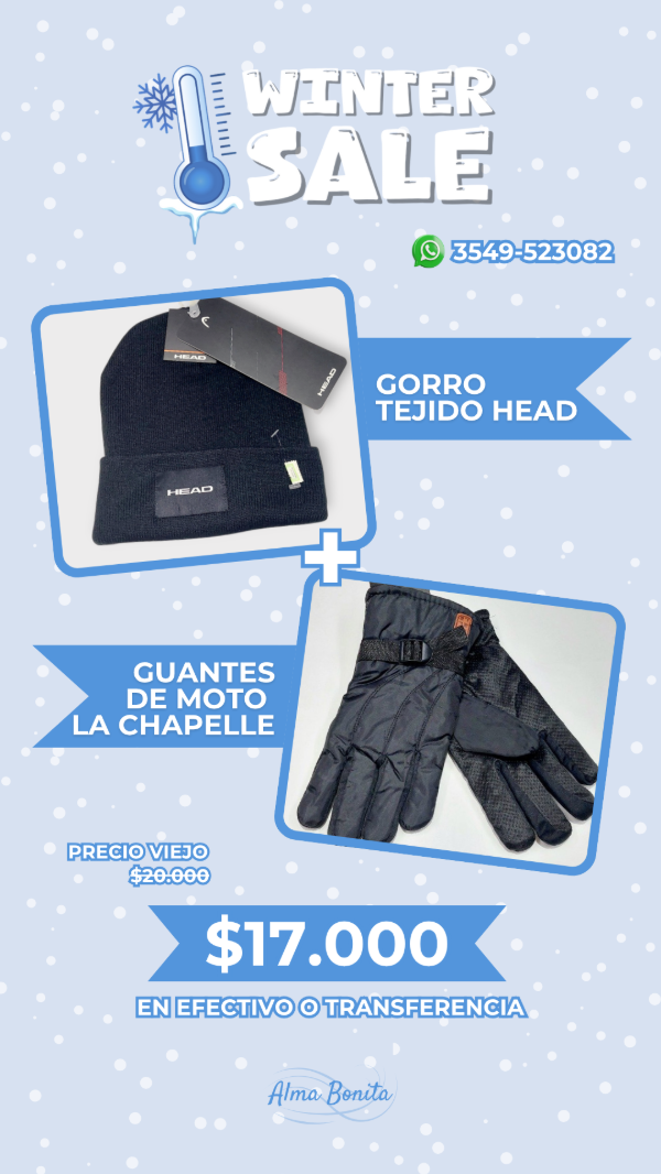 Gorro Tejido Head mas Guantes de Moto La Chapelle
