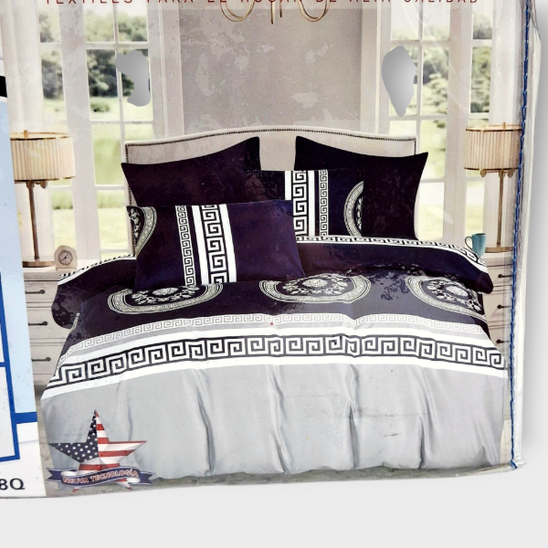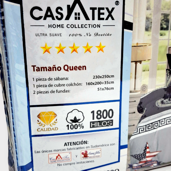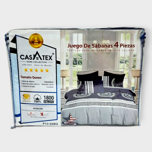 Juego de Sábanas QUEEN Casatex 1800 hilos Azul y gris claro trival